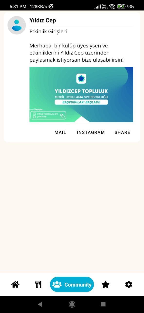 Topluluklar sayfası ile ilgini çekebilecek etkinlikleri öğrenebilir ve detaylı bilgi edinebilirsin. Bu sayfada hem okul içi hem okul dışı gerçekleştirelecek etkinlikler listelenir.