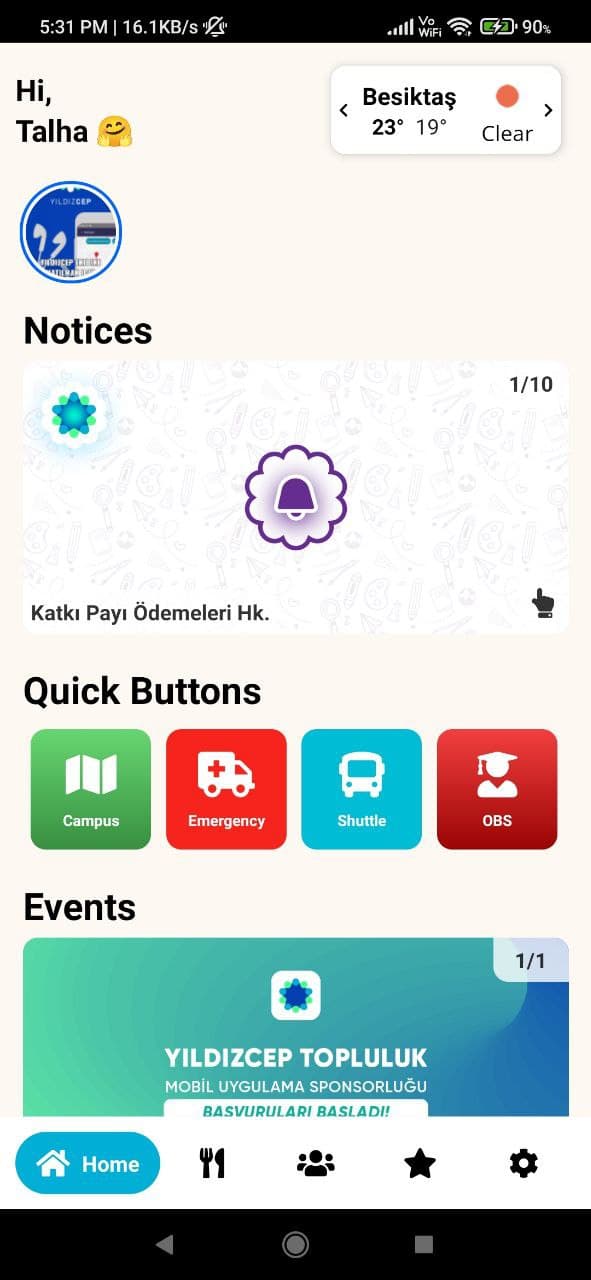 Yıldız Cep sahip olduğu özellikler ile kampüs hayatını organize etmeni kolaylaştırır. Sosyal etkinliklere daha fazla vakit ayırabilmen, arkadaşlarınla daha fazla eğlenebilmen için her şeyi önceden planlayabilmeni sağlar.
